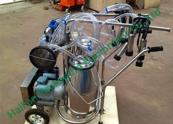 group, 2 stainless steel milking buckets and brackets. This double-barrel type mobile milking machine
